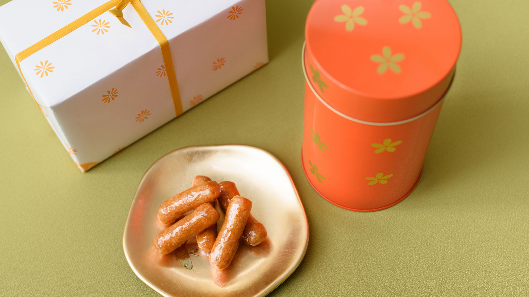 ガラスのように艶やかで、美しい琥珀色の姿形がゆしま花月のかりんとうの特徴です。