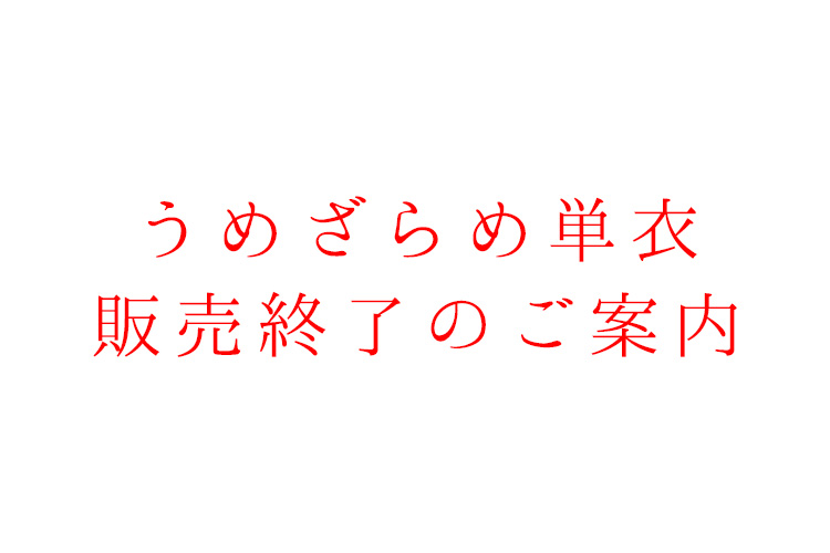 期間限定で販売しておりました「うめざらめ単衣」ですが、大変ご好評につき、店頭、オンラインショップ、梅まつり特設ブース全てで販売期間を前倒しして販売を終了させていただきました。